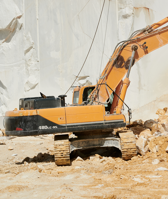 Экскаваторы различных типов и размеров для копания котлованов, траншей и других земляных работ.